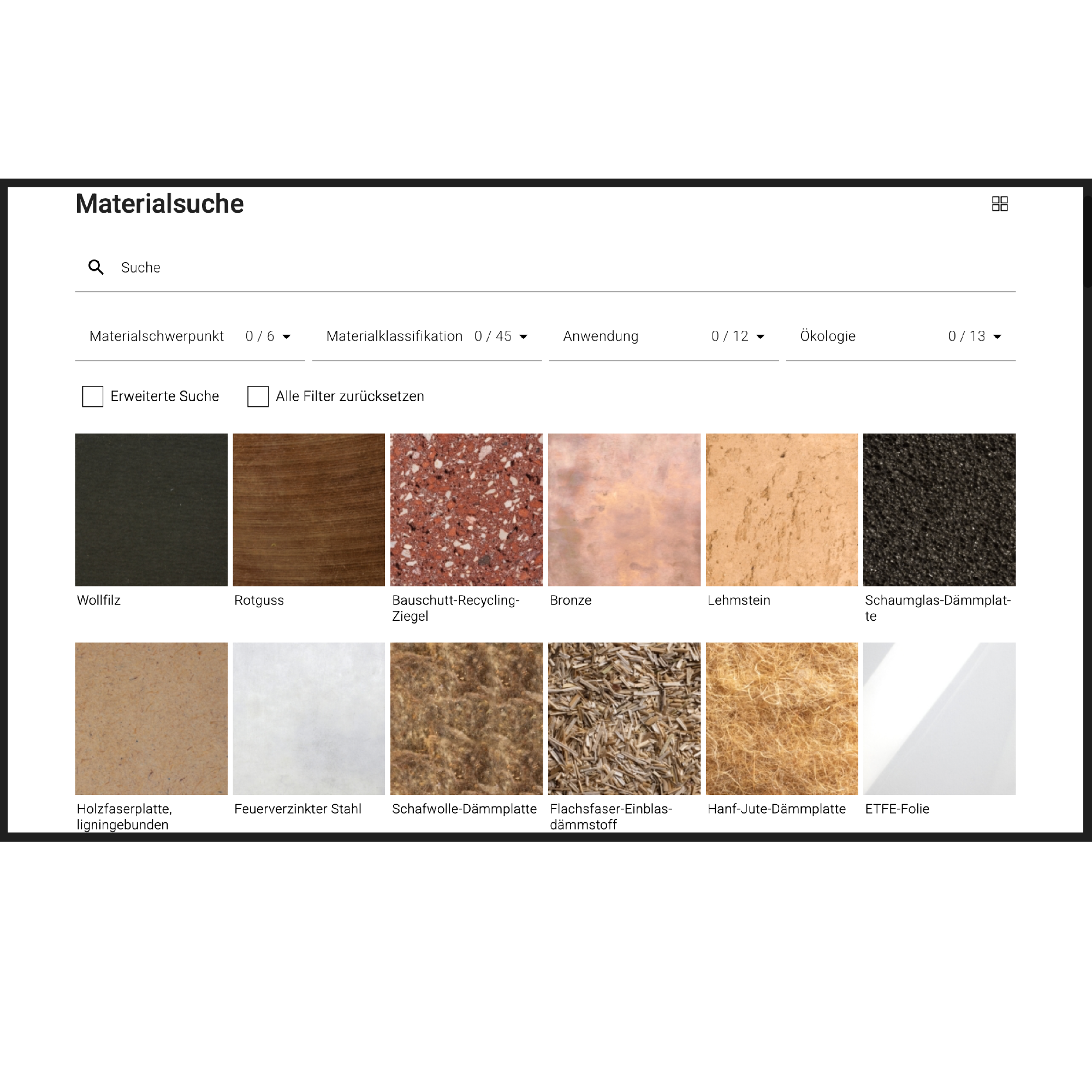 Um sich über nachhaltige Baustoffe zu informieren, gibt es digitale Materialbibliotheken. Hier werden nachhaltige Roh- bzw. Baustoffe gelistet und in ihren Eigenschaften beschrieben. Dabei gehen die Websites bei der Betrachtung in unterschiedliche Tiefen.